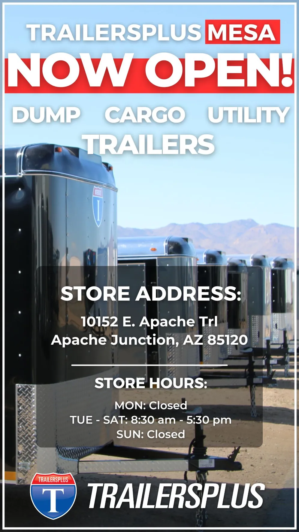 For store hours, reservations, and appointments, visit www.trailersplus.com or contact the Mesa store directly at 480-770-6105.
